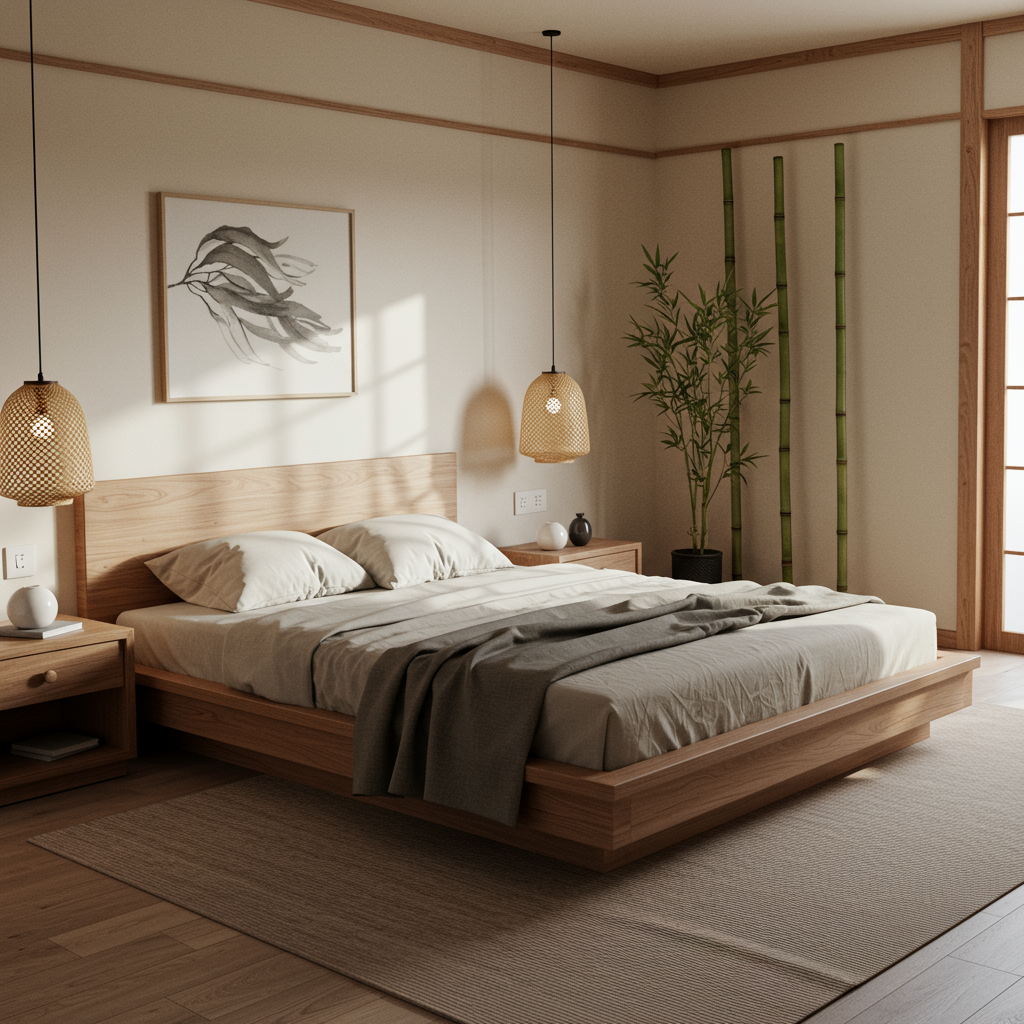 Interested in playing with Japandi? Common features include calming color palettes and organic materials like raw wood and bamboo. Try softening harsh edges with softer textures, like cozy blankets and ceramic pieces.