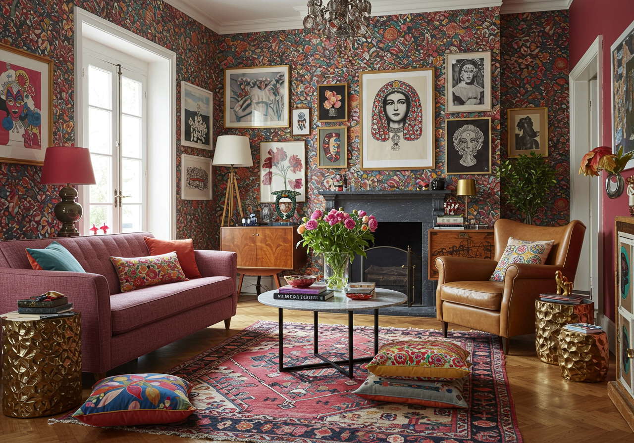 Hallmarks of maximalist style include rich and saturated colors, bold wallpaper, statement rugs and furniture, and lots of art. And forget matching—maximalist interiors often include plenty of contrasting colors, textures, and patterns selected to complement one another.